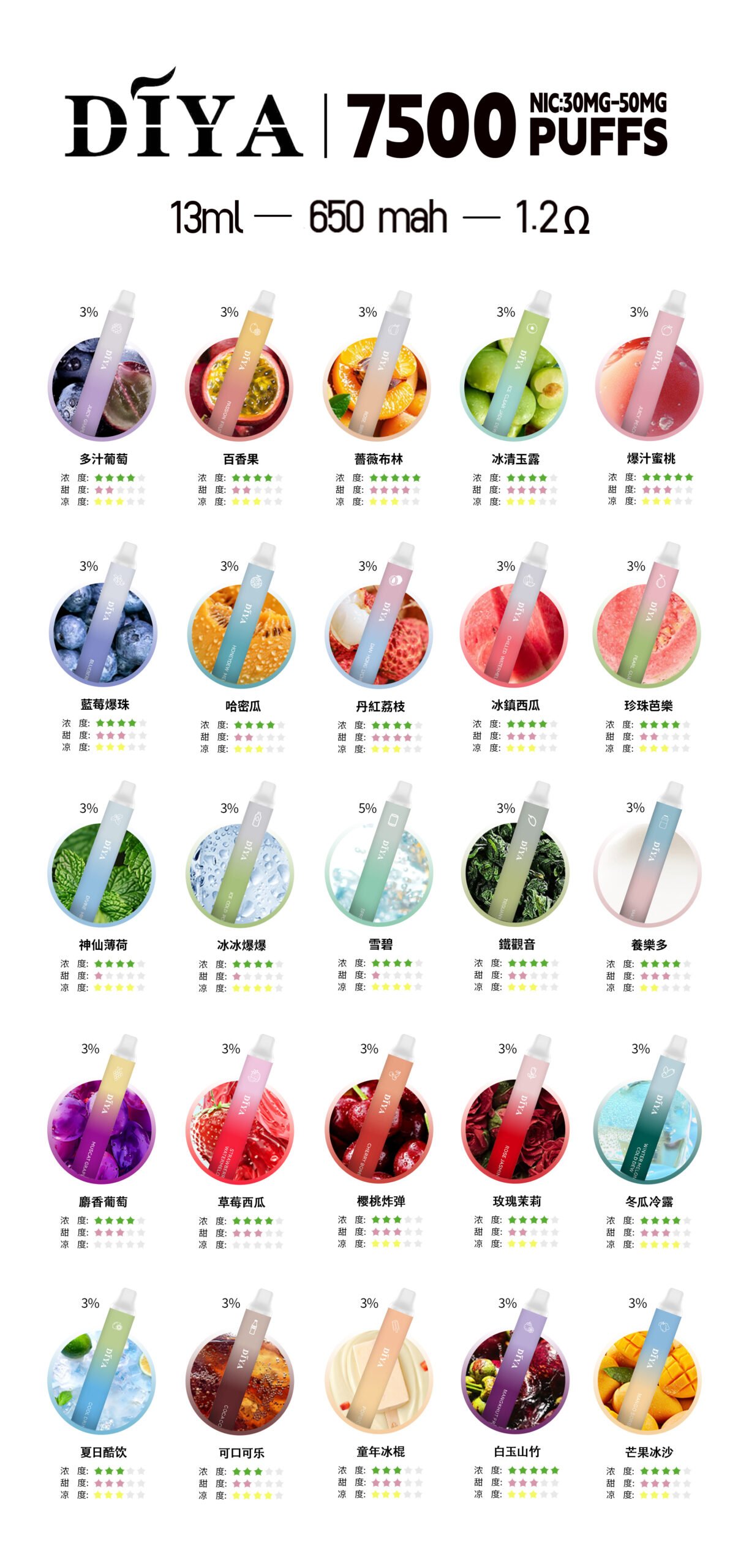 DIYA 叮啞 7500口一次性電子煙|13ml煙油 × 650mAh可充電電池 × 16種風味