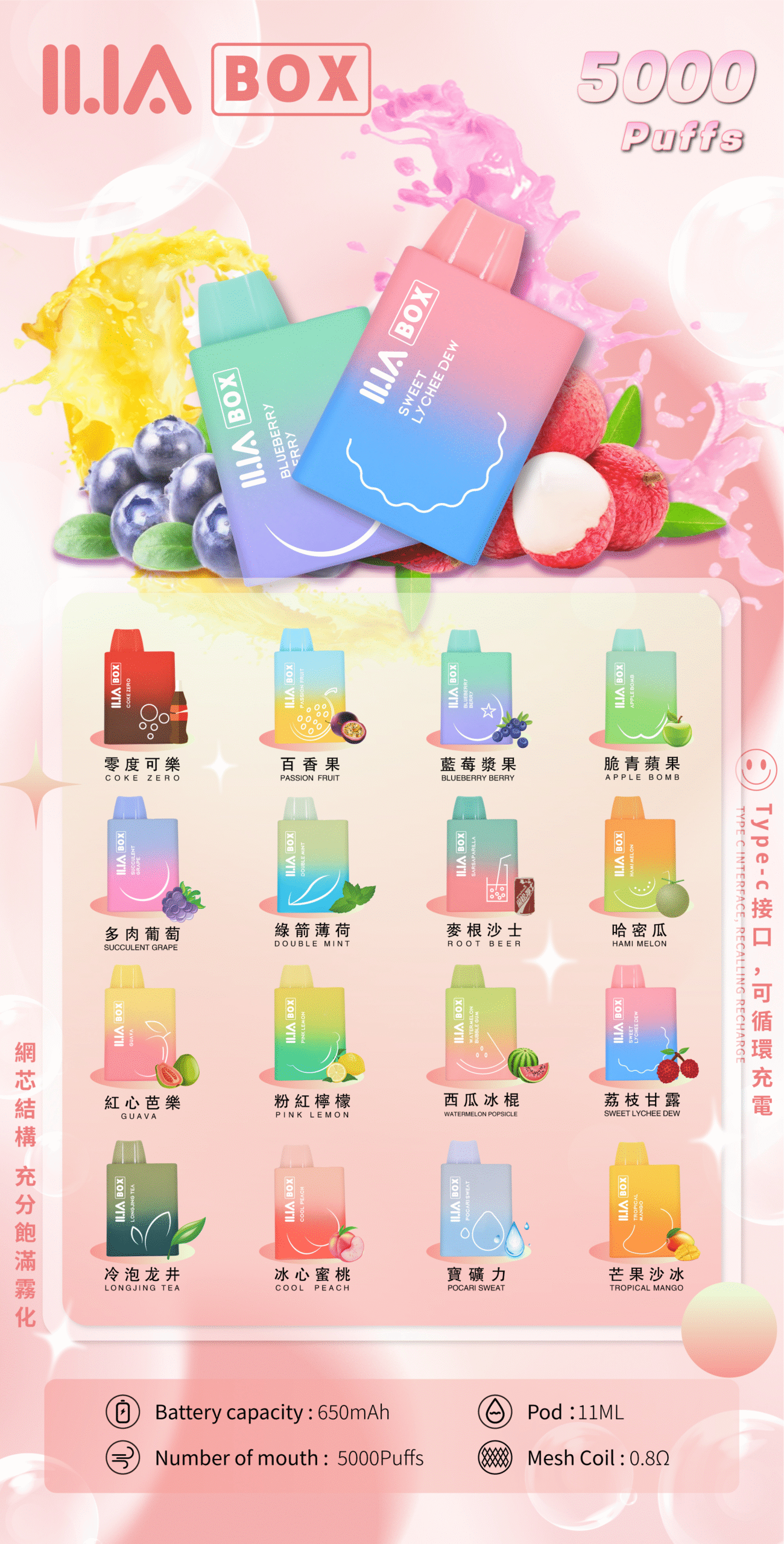 產品名稱:ILIA BOX 哩亞拋棄式電子煙三代 5000口