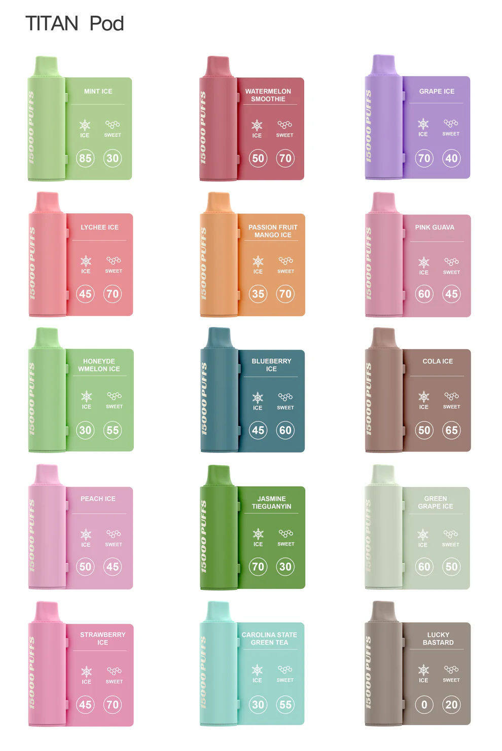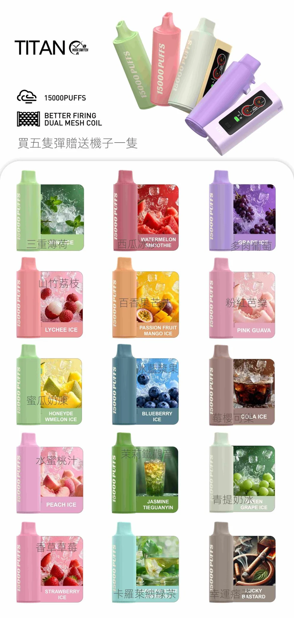 泰坦換彈拋棄式設計帶來全新的體驗,擁有約15000口的大容量,超耐抽,經典的懷舊棉芯確保高還原度和爆發感,並且可調控的氣流和擊喉感讓你隨心所欲,期待你的探索!